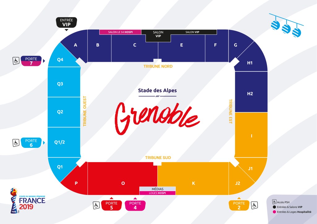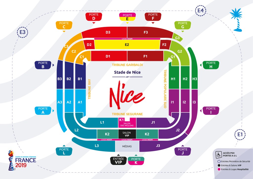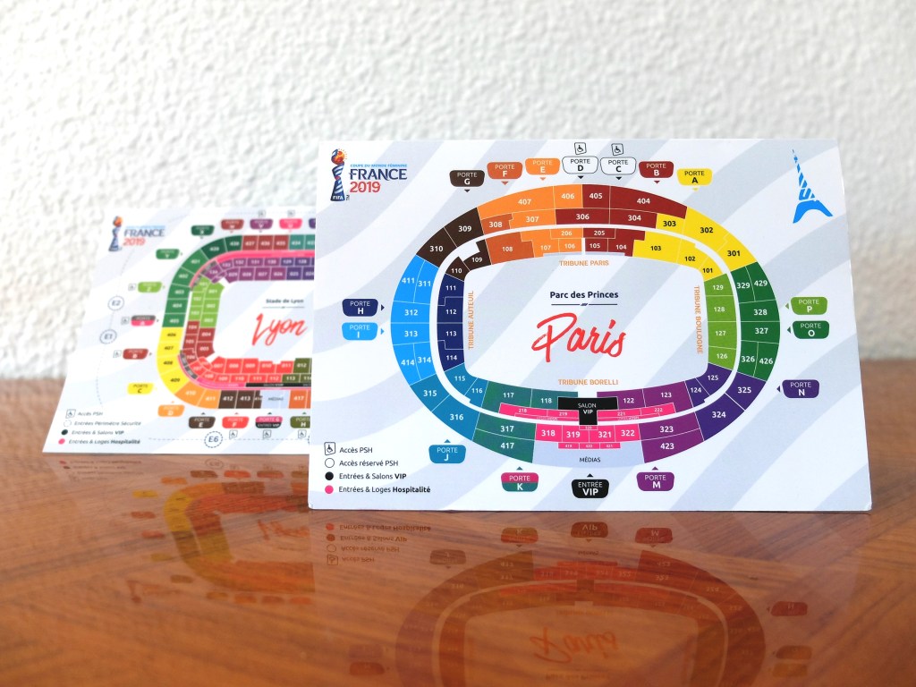 Réalisation des 9 plans tribunes utilisés sur plusieurs supports web (site billetterie) et print (dépliants et affiches).