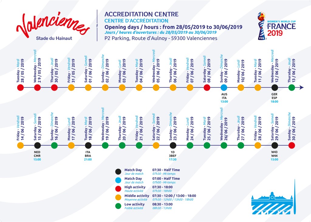 Infographies pour les panneaux des horaires d’ouvertures des guichets Accréditation.