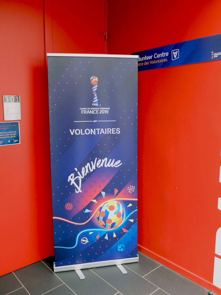 Bâches et flyers pour accueillir les équipes dans la compétition.